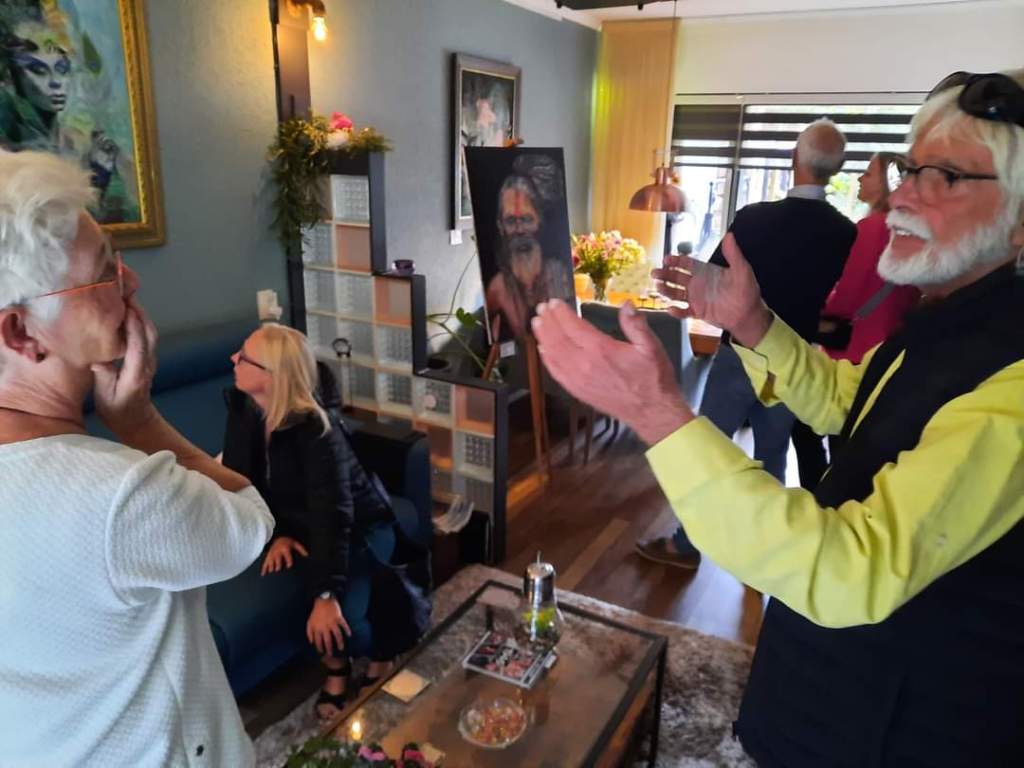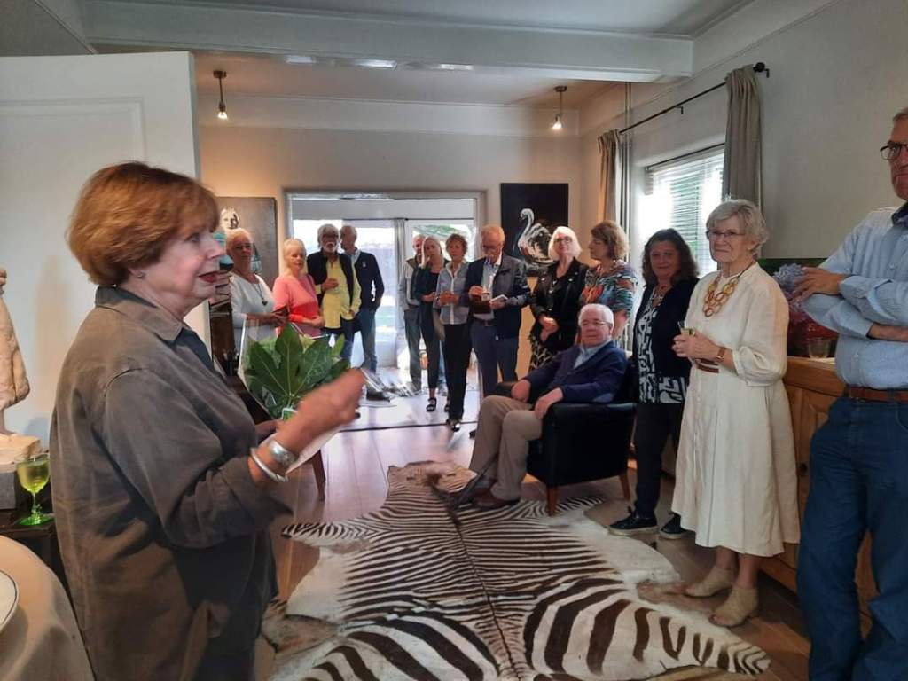 De 10e Kunstroute is vrijdagavond feestelijk geopend met een hapje en drankje. Gastvrouw Joanneke Prins en oprichters van Kunstroute Renswoude heette iedereen welkom. Daarna gaf ze het woord aan oud burgermeester Wilke en Heleen Dekker. Net als 10 jaar geleden heeft hij de expositie officieel geopend.